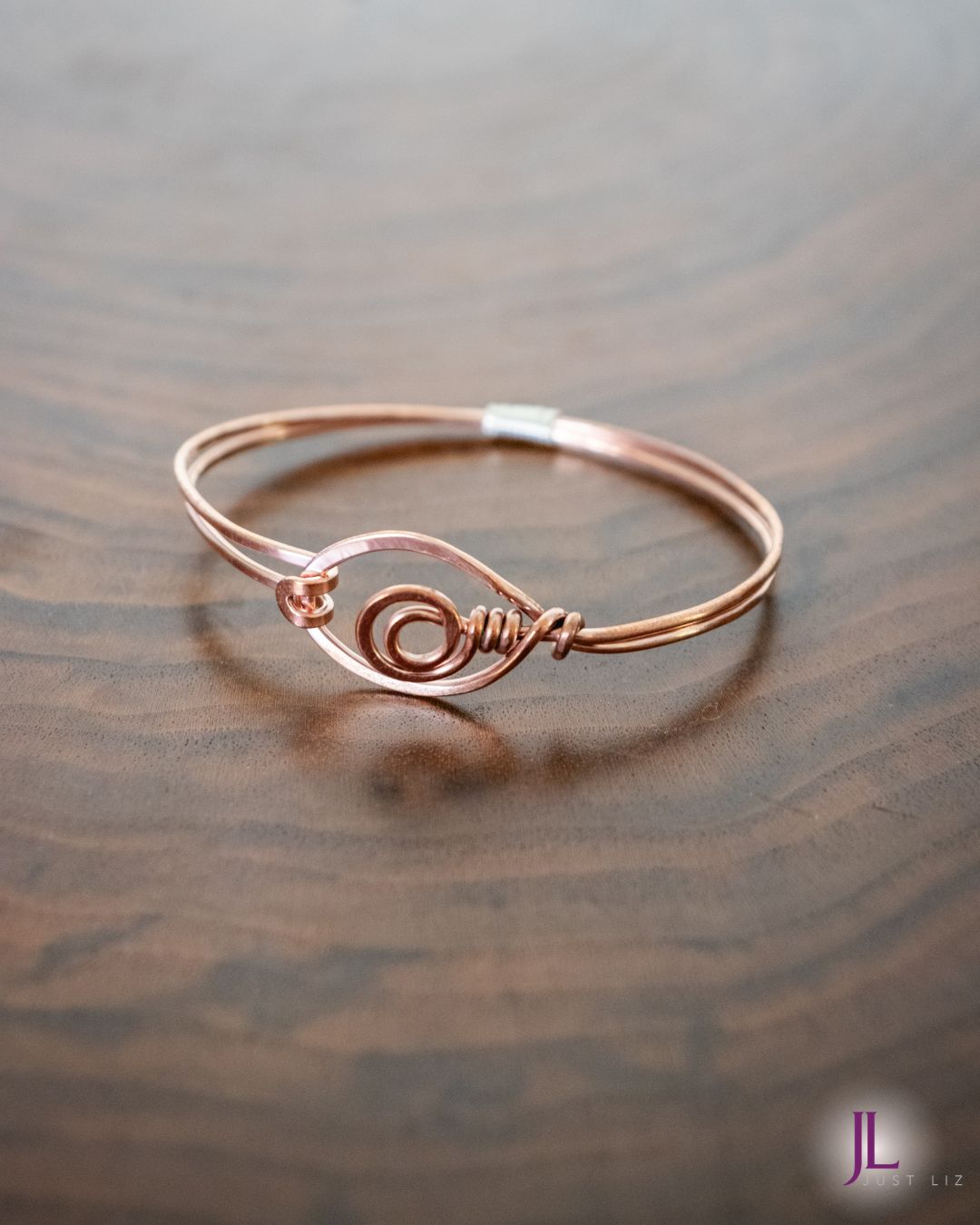 This copper wire wrapped bracelet is such a unique and intricate piece. It’s fashioned with a clasp that allows you to easily slip the bracelet on and off.