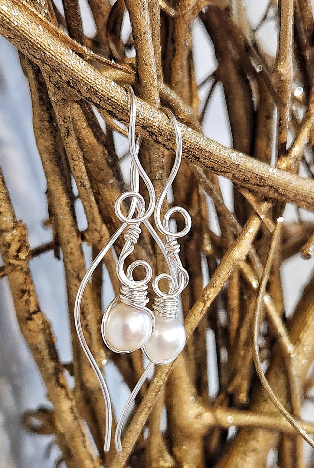 Classical elegance of the freshwater pearl, a unique swirling wire wrap, and a gorgeous design. These earrings have it all. This is pair is sure to elevate any outfit it's worn with.