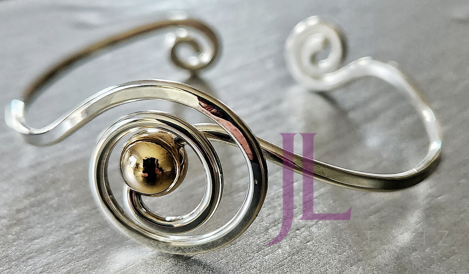 Add a touch of sophistication to your wrist with this stunning sterling bracelet featuring a gold filled bead. This handmade piece is a timeless accessory that will add a bit of sparkle to any ensemble. Stylish yet delicate, with the perfect balance between elegant and contemporary, it will be sure to draw admiring glances when you or your loved one wears it.