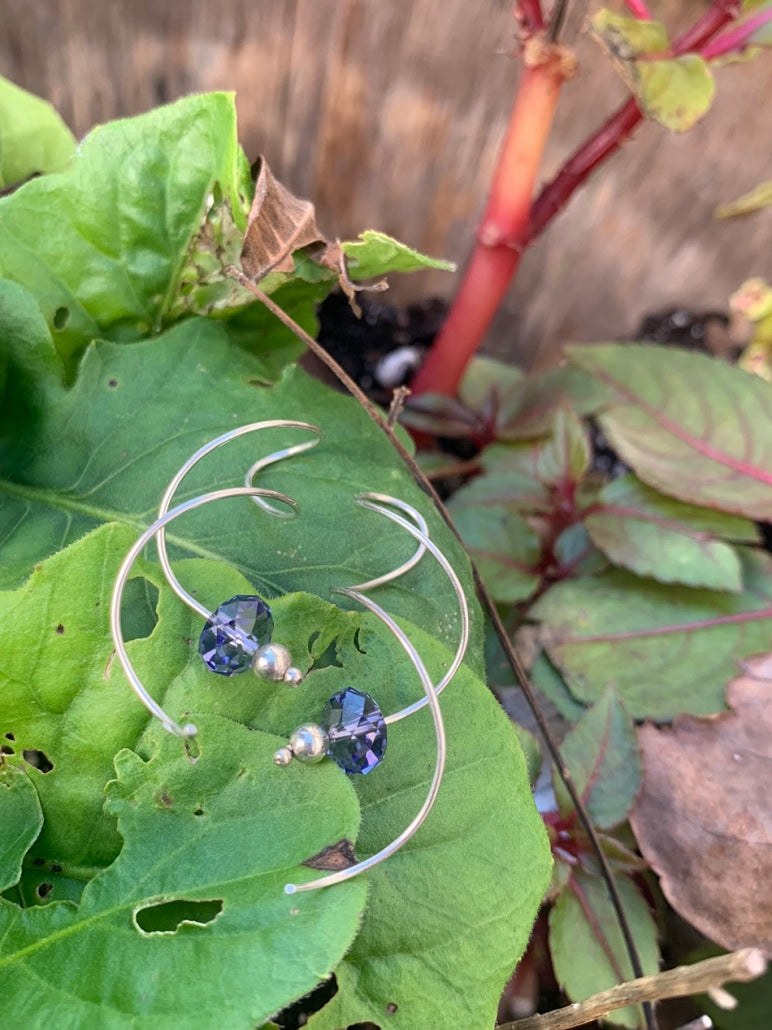 With a cascading spiral to a beautiful violet bead these earrings are a piece of art.